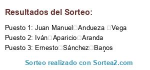 Este sorteo ha sido certificado por Sortea2. Sortea2 garantiza que:
