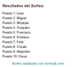 Lista de participantes: Emiliano, Francisco, Crizabi, Felix, Miguel, Alejandro, Oscar, Moyejas, Guayabo, Leos.