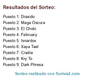 Este es un sorteo realizado por GM Raizer. En el cual participaron 46 miembros. Los usuarios ganadores tendran que contactar a GM Raizer dentro del juego para que les pueda entregar su premio.