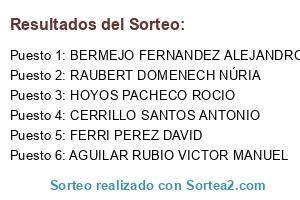 - Puesto 1: BERMEJO FERNANDEZ ALEJANDRO