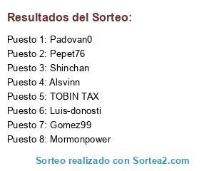Lista de participantes: Alsvinn, Shinchan, Gomez99, Pepet76, Luis-donosti, TOBIN TAX, Padovan0, Mormonpower.