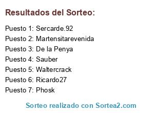 Lista de participantes: Waltercrack, Sauber, Sercarde.92, Ricardo27, Martensitarevenida, Phosk, De la Penya.