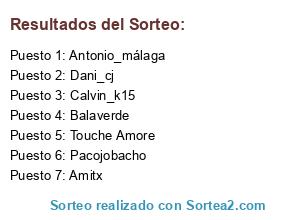 Lista de participantes: Antonio_málaga, Touche Amore, Balaverde, Dani_cj, Pacojobacho, Amitx, Calvin_k15.