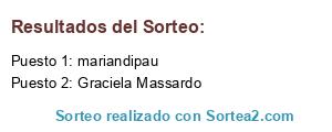 Lista de participantes: maby168, joyaccesorios, andydigiulio, loreorlandousa, anl.fotografia, mariandipau, polidona, elvisattack, lunahadida, Romina Pagano, Nady Nadita, Chechu Cavallo, Cristina Mongiardini, Marcela Fernández Rocha, Vicki Díaz, Mariana HM, Guillermo Franceschi, Beatriz Hillesein, Brenda Kihn, Carmen Azucena, Ana Julia Rossi, Lorena Orlando, Silvina Benitez, Silvina Cortondo, Agustin Primiani, Eva Gardyn Tendlarz, Andrea Gaveglio, Graciela Massardo, Carolina Konstantinovsky, Pablo Strozza, Karina Curly Johansen, Paula Garcia, Mechi Parra, Alicia Migliano, Patricio Gol, Ana María Sánchez, Roxana Salamone, Alejandra Ramirez, Alicia Fontana.