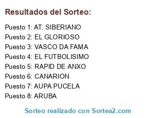 Lista de participantes: ARUBA, AT. SIBERIANO, AUPA PUCELA, CANARION, EL FUTBOLISIMO, EL GLORIOSO, RAPID DE ANXO, VASCO DA FAMA.