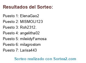 Hola chicas este es el sorteo y sus resultados... Ya entrege los premios*