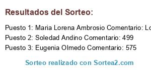 - Ganador 3: Eugenia Olmedo Comentario: 575