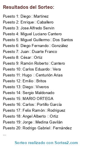 Resultados del sorteo: