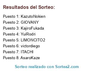 Lista de participantes: victordiego, YuiRodri, LIMONCITO2, KazutoNokien, KajiroFukada, ITACHI, GIOVANY, AsaroKaze.