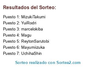 Lista de participantes: marcelokiba, YuiRodri, UchihaShin, ReytonSarutobi, MizukiTakumi, Mayumiizuka, Magu.
