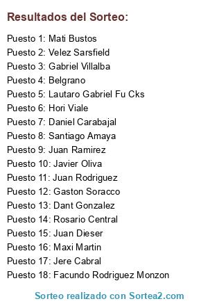Lista de participantes: Gaston Soracco, Daniel Carabajal, Javier Oliva, Gabriel Villalba, Juan Dieser, Facundo Rodriguez Monzon, Dant Gonzalez, Mati Bustos, Hori Viale, Jere Cabral, Juan Ramirez, Juan Rodriguez, Lautaro Gabriel Fu Cks, Maxi Martin, Santiago Amaya, Belgrano, Rosario Central, Velez Sarsfield.