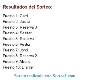 Lista de participantes: Sesitar, Abundi, Diarce, Carri, Jordi, Josito, Vestia, Reserva 1, Reserva 2, Reserva 3.