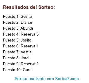 Resultados del sorteo: