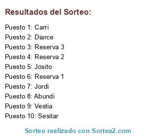 Lista de participantes: Sesitar, Abundi, Diarce, Carri, Jordi, Josito, Vestia, Reserva 1, Reserva 2, Reserva 3.