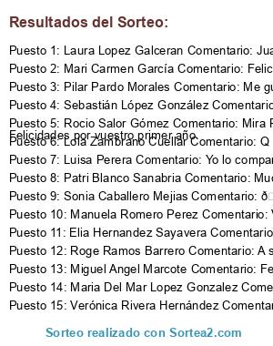 - Ganador 2: Mari Carmen García Comentario: Felicidades por ese primer año. Que sean muchos más. Etiqueto a María José Caro Mateos, Paco Pardo, Manuel Lopez Garcia y Mangeles Puerto Torres.