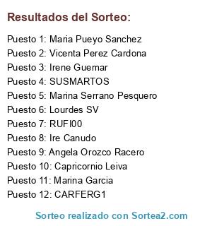Lista de participantes: TIPMLG09, PITBIKE83, THE_ESTRUCTURA, SUSMARTOS, WIKYRA, JUCADIPO1994, CARFERG1, SABATO01, RZ_JAVI, ATHFUTBETLIFE, CONSEJOS_FITNES, ANAPINANA1, MARIADESCAPADAS, RUFI00, CRISTIANMELLI9, WEONE_1, SACKPLANET, HOYPUEDEQUESI, JUANCA_MELLI, LAURACARTOON, Bruno Bento, Mariam Muñoz Jiménez, Julia Isabel Téllez, Silvana Sofia Gonzalez, Wendy Perez, Meritxell Figueras, Kryzia Roncero Martín, Carmen Garcia, Vicenta Perez Cardona, Irene Villar, Nuria Muñoz, Lucia Martínez Muñoz, Paqui Caceres Morales, Raquel Lie, Yram Pascual, Marina Parra, Irene Ana Crusats Sans, Ana Rg, Pilar Bart, Arantxa Argudo, Mireia Guarner Piquet, Sonia Marcos Roman, Irene Guemar, Julia Paskalieva, Cristina Montero Fernández, Javier Menendez, María Alón, Sonia Mad, Maria Victoria Gamez Gomez, Maria Carmen Lopez Lillo, Sara Fernandez Martinez, Maria Pueyo Sanchez, Monika Warias, Jose Antonio Nasarre Anzano, Carolina Pérez Máñez, Jessica Sonejee, Gabry Blanco Diaz, Honey Soni, Carol Stilman, Marta Nestares, Lucía Martín, Paula Santos, Marina Sánchez, Ricardo Riazor, Almu Escrig Méndez, Roberto Parro Gonzalez, Inés Marzal Mora, Lorena Nav-Rob, Sara Isabel Rodríguez, Raquel López, Angela Orozco Racero, Selene Cuenca Peris, Marina Garcia, Maribel Betancur Arroyave, Esther Martinez Garcia, Lourdes SV, Guky Ayub, Susana Llopart, Nuria Blanco Sauce, Trini Diaz, Laia Ferrer Meseguer, Tony Hsieh Jr., Angela Soler, Mari Carmen Romero, Irina Gimeno Ruiz, Angélica Queroja, Laia Capo, Isabel Orihuela Ruiz, María Ruiz Pérez, Anna Molina Rodríguez, Conchy Franco Lopez, Ines Sanguino Cano, Adriana Yup, Marie Jo, Alexia Quinteros, Matilde Ojeda Martinez, Milka Aguilera, Teresa M Anguita, Alain Sen, Txus Sánchester, Kiran MJ, Loli Perez, Yonael Juan, Ana Vera, Toni Rubio, Mario Maldonado, Mari Fernández Vázquez, David Salazar Vazquez, Benjamin Donat Rubio, Monica Edwards, Ditka Fidler, Andrea Martínez Estévez, Marina R. Murillo, Micaela Enriquez K, Alvaro Garcia, Arancha Die, Leticia Avila Sánchez, Ingrid Cesareo, Riina Maria Korpela, Vicente Juan Torres Escandell, Vicente Torrejón, Rodrigo Damián, Martin Rojas S, Elena Gonzalez SSegundo, Caetano Reis, Marina Serrano Pesquero, Mercè Mp, María Eugenia Sierra, Mónica Ortiz, Kathy Diaz, Andrea Montero Camarero, Estefanía Núñez Palacios, Cristina Ballester, Sonia Ramírez, Simran Keswani, Sol Pardo, Viviana Santos, Aixa AR, Purificacion Gil Berdejo, Isabel Zahino, Javier Gutiérrez Hidalgo, Ire Canudo, Estefania Samaniego, Cris Galarza, Geminis Moreiz Salas, M Arantza Sango, Juan Carlos Lozano Moreno, Vanesa Morera Celis, Tamy Valle Canton, Capricornio Leiva, Inma Mora, Marta Negrillo, Monika Velo, Carolina Benítez Sala, Rosa Garcia, Ana Alonso Coello, Anna Pellicer, martareina97, daytona.louise, mariiasanchz_, sara_mcdls, mariasastretac, sandraro85.