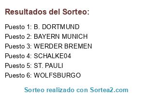Lista de participantes: WERDER BREMEN, ST. PAULI, B. DORTMUND, SCHALKE04, WOLFSBURGO, BAYERN MUNICH.