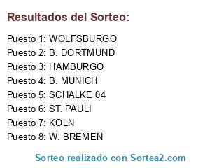 Lista de participantes: W. BREMEN, ST. PAULI, B. MUNICH, B. DORTMUND, KOLN, SCHALKE 04, HAMBURGO, WOLFSBURGO.