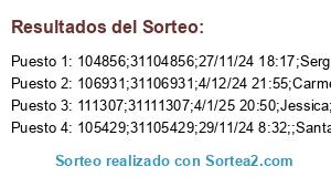 Este sorteo ha sido certificado por Sortea2. Sortea2 garantiza que: