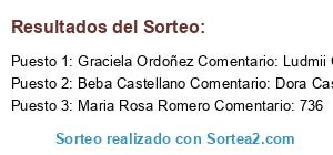 - Ganador 1: Graciela Ordoñez Comentario: Ludmii Ovejero Luis Almeyra Walde Ovejero 752