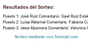 - Ganador 3: Jessi Alzamora Comentario: Veronica Viviana Martinez Ana Maria Maxi Alzamora