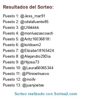 - 2018-06-04 09:50:52 (GMT): Se modifica el sorteo (los participantes y ganadores permanecen intactos)