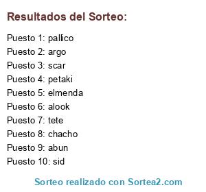 Lista de participantes: petaki, alook, scar, tete, abun, chacho, argo, elmenda, pallico, sid.