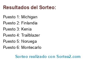 Lista de participantes: Michigan, Kenia, Montecarlo, Noruega, Finlandia, Trailblazer.