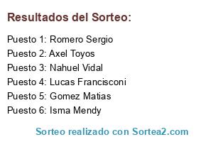 Lista de participantes: Isma Mendy, Lucas Francisconi, Axel Toyos, Gomez Matias, Romero Sergio, Nahuel Vidal.