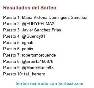 Lista de participantes: María Del Olmo, Maria Victoria Dominguez Sanchez, Silvia AC, Jose de Frutos, Tamy Caro, Isabel Caro Sanz, Javier Sanchez Frias, Güendy Gracias, Marimar Romero de Avila, Camilo Diaz Martinez, Jesus Lopez, Tamara Rama Rodriguez, Silvia Fernández, @EURYPELMA2, @Guendy81, @sirenita160876, @13Rhayan, @MonikMartin95, tali_herrero, monis_ima, lauracalavera, patriix__, rhayan13, ngnati, tere1386, mariagrnd._, desi_s_, robertomorcuende.