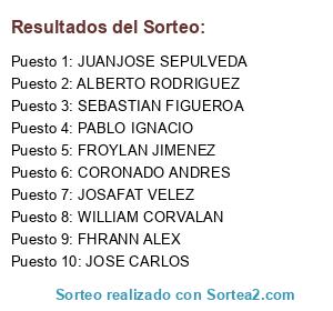 Lista de participantes: FHRANN ALEX, SEBASTIAN FIGUEROA, WILLIAM CORVALAN, JUANJOSE SEPULVEDA, FROYLAN JIMENEZ, ALBERTO RODRIGUEZ, JOSAFAT VELEZ, CORONADO ANDRES, PABLO IGNACIO, JOSE CARLOS.