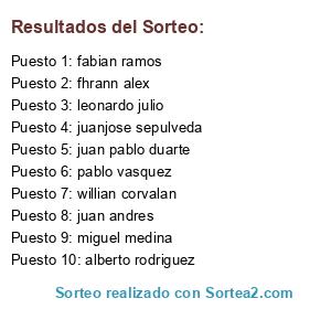 Lista de participantes: fhrann alex, miguel medina, juan andres, juan pablo duarte, alberto rodriguez, juanjose sepulveda, willian corvalan, pablo vasquez, fabian ramos, leonardo julio.