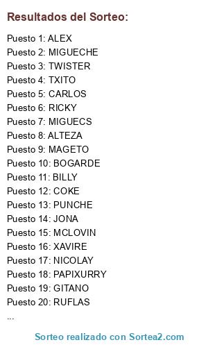Resultados del sorteo:
