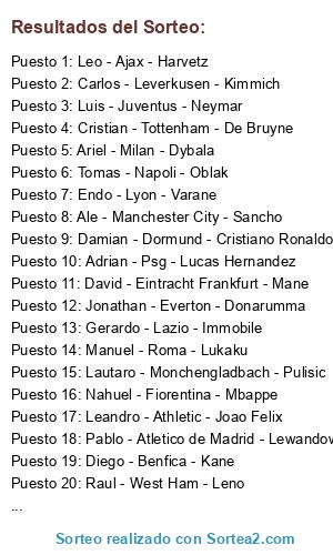 Resultados del sorteo: