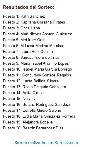 Lista de participantes: Lara Martin, Gema Cabezon Ayala, Alba Hidalgo, Christian P. Ortiz, Rocio Valencia, Esther Gomez, Raquel Puebla Guijosa, Leonardo Martin Tahoces, Leticia Catena, Maria Garcia Vidales, Marisa Gonzalez Conde, Silvia Martinez Martinez, Mini Torres, Pedro Espinosa, Mari Carmen Sanchez Carbonero, Alejandro Valeros, Disfrutando Cocinando, Sonia Agulla, Lydia Maria Gonzalez Romera, Laura Torres, Peck Er, Ana Encina Trujillo, Arantxa Gomez, Ana Mari Lopez, Beatriz Sanchez, Conchi Echavarria Navarro, Cristian Rmcf, Carolina Pelaez Sanfiz, Mercedes Rocío Villarán Ojeda, Rosa Belmonte Rodríguez, Miriam Miriam, Yolili Muñoz, Isa Re, Mari Paz Otero Cisneros, Rocío Frías, Inmaculada Magro Martínez, Leonor Bernal, Alvaro Duran Perez, Sarah Navarro Sanchez, Tana Alvarez Francoso, Esme Gallardo Mendoza, Mari Carmen Rodriguez Gomez, Blanca SRosado, María José Hernández, Laura Delgado Olmo, Vanesa Isidro de Frias, Morales Raquel, Amanda Gimenez, Irene Guemar, Ruth Sanjuan, Noelya de la Paz, Victoria Burgos Gómez, Yoli Rodriguez, Cristina Crm, Monica Guillen, Angela Solar Payno, Maria Jose Nevado, Rocio Espejo, Miriam Grande Huguet, Jessica Alvarez Blanco, Ana Peña Lesmes, Esther Diaz Jorge, Verónica Mor Sol, Vanessa Chacon, Sonja Hofmann, Sonia Emdc, Cristina Pastor Lledo, Beatriz Valiente, Anaid Tururu, Anita Rodríguez González, TaTi Pérez, Sandra Moreda, Sonia González Camacho, Juli Esp, Raquel Haro Blanco, Campa Nails, Luz Sánchez Fernández, Sole GP, Inma Collado Portilla, Irene Masip Morte, Ana Gutierrez, Maribel Perez Nieto, Noelia Llarandi, Laura López Rodríguez, Patricia Martínez González, Raquel Rui Hdez, Victor Manuel Sevilla Moratalla, Dulcelicioso Dulcelicioso, Paula Sanchez, Amparo Xam Tomas Soto, Pastelaurita Cookies, Mariló Salmerón Fernández, Fani Blanco, Mari Nieves Aspron Gutierrez, Noa Carames, Ines Urrutia, Vicky Ch R, Paulii Dominguez Yebra, Alicia Prieto Martín, Marisa Rescalvo Gozalo, Alvaro Moratalla, Eva Lin, Montse Fernandez Martin, Silvia Vergara Vázquez, Ainhoa Izquierdo, Monte Plaza Tajadura, Laurita Jiménez, Marisa García Sánchez, Aita Lpz, Raquel Dura, Patri Higuero Lorenzo, Alba Sanchez Valiño, Beatriz Garcia Vera, Marisa Gabín, Ainoa Rodriguez Serrano, Susann Delgado Susann, Belen Sanchez Gil, Sara Munoz, Rhutty Pariente Oh Ke Cakes, Ana Martín, Sandra Arias, Raquel Gonzalez Gomez, Gema Rp, Lorena Cardenas Gonzalez, Un Dulce Bocado, Amparo Gonzalez Gonzalez, Rocio Gonzalez Barrera, Beatriz Cardoso, Victoria Eugenia, Marta Perez Moreno, Laura Díaz Milán, Antonia López, Bei Moreno, Estefania Hernandez, Alicia Agudo Angulo, Silvia Pérez, Magali Poderoso Blazquez, Val Corcoles, Raquel TL, Esther Del Grao Delgado, Susi Gonzalez, Laura Celada Nevado, Aina Dominguez Castells, Anabel Aguado Quiralte, Sandra Ramos Jiménez, Esperanza Morales Bermejo, Eva García, Cristina Añón Rodríguez, Rut Jiménez Galán, Daniela Silva, Maria Del Carmen Tomás, Melissa G CH, Estrellagc Gil Castro, Mar Rodriguez, Nely Ly, Luisa Maria Guerrero Romero, Sandra Jimenez Perez, Elena Embí Castillo, Josefa Encina Trujillo, Ana Carrasco, Mariette Rabanal, Laura Fuertes, Cristina Gómez Montilla, Manualidades Onita, Marisa Yanes Alarcon, Helena Bermejo Piquero, Mariu Maria P. D, Ana Gil, Nieves Romo, Zuri Calleja, Diana Monteiro Quiñones, Carmen Castellano Juárez, María Saborit, Belen Arraez Peinado, Nuria Corrochano Carpintero, Irene Navarro Fuster, Marisa Barrios, Mireia Sanmartin Mirón, Marga Revilla Boton, Lidia Sanj So, Anna Gili Soldevila, Julia Avila Lozano, Ire Iren Irene, Fati Corco, Vanesa Murciano Álvarez, Daniella Díaz Bates, Susana Rocha, Noelia Pelaez Sanfiz, Cristel Fernandez Quirosa, Bea Recetasymás, Patricia Sánchez, Jessica Perez Angulo, Nuria Izquierdo Palomera, Maria Fernanda Carpio Leon, Soraya Parro, Tamara Tamambar, Felisa Martinez Castellano, Dori Rodriguez, Laura Ruiz Cuesta, Angeles Llamas, Paloma Jimenez Pompa, Laura A Rubio Casado, Tali Pla Nadonga, Raquel Del Vas Garcia, Kapitana Corsaria Pirates, Rosana Donosti Lorenzo, Lolilla Alvarez Garcia, Noemi Fuentes, Dácil Kivilaakso, Raquel Barrios, Esther Clases, Juan Carlos Rubio Prestel, Irina Timofeeva, Eva Salamanca del Moral, Evangelina Arce, Inma García Domingo, Marisa Hernandez Jimenez, Franci Bustos, Alejandra Lobelle, Elena Pontón, Patri Sanchez, Meritxell Morais, Cristina Escribano Gutierrez, Maria Jose Martin Salvador, Mia Artesa, Alicia de los Rios, Maria José, Betyña RL, Lugo, Sonia Caballero Martin, Mis Dulces Miradas, Mayra Garcia Cerro, Isa RH, Ery Martin, Sara Rodriguez Martinez, Maria Rodriguez Herrera, Distribuidora Avon, Chúpatelosdedos ConSonia, Mariia Iglesiass Muñoz, Covadonga Fernandez Suarez, Lucia Tocino Sandubete, Ana Fernández Ruiz, Rocio Bermudez Gata, Amaia Torres Sánchez, EstefaniaAna Romero Leiva, Mar Garza, Palmira Gracia Mateo, M Luisa Medina Merchan, Anne Belmonte, Yolanda Gutierrez Gomez, Marta Reyes Rández, Aida Gimenez Sanmartin, Maria Naranjo Pinta, Ester La Fera, Logroño, Karina Ceballo, Paula la Cakery, Laura M Merino, Ana Espejo, Maria Garcia Vico, Rosalia Lopez, Mayka Mibg, Isabel Casuso Caloca, Sara Leiva Gil, Sabrina Campos Pallin, Sonsoles Miguel Antequera, Jessica Gonzalez, Bea Ortuondo, Paloma Castle Palace, Kristian Perez, Antonia Martínez Martínez, Anita Cintas, Sara Tralara, Carolina Velázquez Cobo, Juan Rubio, Esme Ralda, Inma Martinez Medina, Vicky Perez, Silvia Barrios, Jesús Heredia Rodriguez, Mery Ruiz Pedraza, Patricia Matesanz, Nagore Arostegui Rojo, Maria Valentina Castillo, Alicia Carrero Marcos, Mónica Prieto García, Veronica Garcia Pardo, Beatriz Puerto Falcon, Sheila Pérez Villalba, Yolanda Valentin Garcia, Pilar Iñiguez Rama, Aida Alonso Herrero, Inés Peiró González, Verónica Flores Martin, Esmeralda Silva, Sabores de Yaiza, Ana Belen Garcia, Mary José Rodríguez, Ana Navarro, Ruth Alba, Maria Jose Lendrino Camacho, Esther Tejedor, Laura Rodriguez Martinez, Antonia Luque, Merc