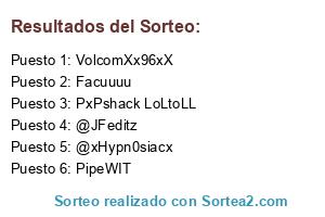 Lista de participantes: VolcomXx96xX, TheSeio999, Blaze6452, FANOFCOD, KGamerKiller, Facuuuu, PipeWIT, Megamaniac35, lordi6969, juanjooo172, ThePichuHD, TheFrancisCC, PxPshack LoLtoLL, meaburroporcompleto, XxgabyFALYxX, TheLolero, thecallofdutero, @killermid, @JFeditz, @Santiago0440118, @xHypn0siacx, @N_LoverPoke, @gabriifuenlaa, LordFollow, Luchylol, Christo21LP, sicobs90.