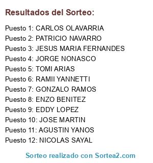 - Puesto 1: CARLOS OLAVARRIA