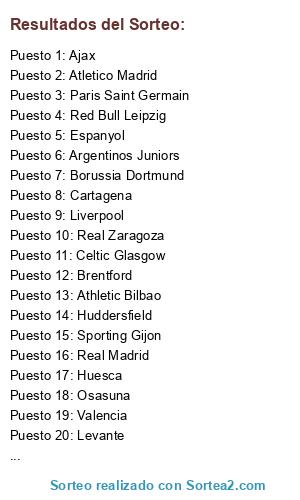 Lista de participantes: Sankt Pauli, Huddersfield, Chelsea, Celtic Glasgow, Valencia, Goa, Real Zaragoza, Argentinos Juniors, Brentford, Inter Milan, Sporting Gijon, Manchester United, Zenit Sant Petersburg, Real Betis, Barcelona, Paris Saint Germain, Cartagena, Levante, Borussia Dortmund, Bayern Munich, Red Bull Leipzig, Villarreal, Osasuna, Liverpool, Ajax, Espanyol, Atletico Madrid, Boca Juniors, Athletic Bilbao, Ibiza, Huesca, Real Madrid.