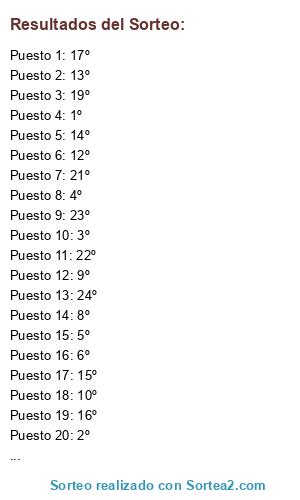 Lista de participantes: 1º, 2º, 3º, 4º, 5º, 6º, 7º, 8º, 9º, 10º, 11º, 12º, 13º, 14º, 15º, 16º, 17º, 18º, 19º, 20º, 21º, 22º, 23º, 24º.