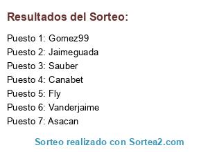 Lista de participantes: Jaimeguada, Vanderjaime, Canabet, Gomez99, Asacan, Sauber, Fly.