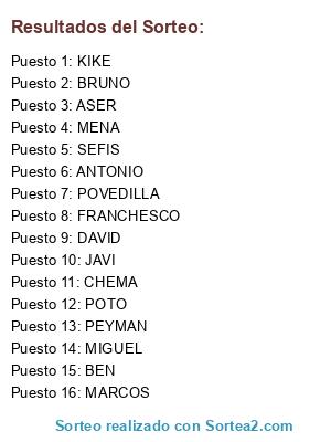 Resultados del sorteo: