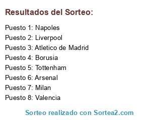 Lista de participantes: Valencia, Atletico de Madrid, Tottenham, Borusia, Arsenal, Milan, Napoles, Liverpool.