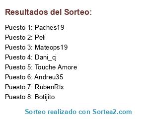Lista de participantes: Paches19, Botijito, RubenRtx, Peli, Andreu35, Dani_cj, Mateops19, Touche Amore.