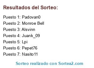 Lista de participantes: Lpi, Pepet76, Padovan0, Alsvinn, Monroe Bell, Nasito11, Juank_09.
