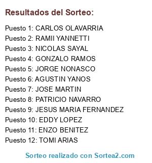 - Puesto 1: CARLOS OLAVARRIA