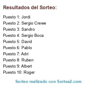 Lista de participantes: Sandro, Albert, Ruben, Sergio Crewe, Sergio Boca, Roger, Jordi, Pablo, David, Adri.