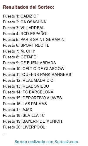 Resultados del sorteo: