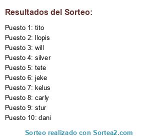 Lista de participantes: tete, jeke, tito, llopis, will, kelus, carly, silver, stur, dani.
