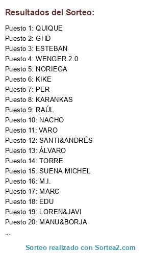 Resultados del sorteo:
