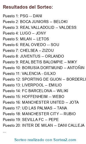 Resultados del sorteo: